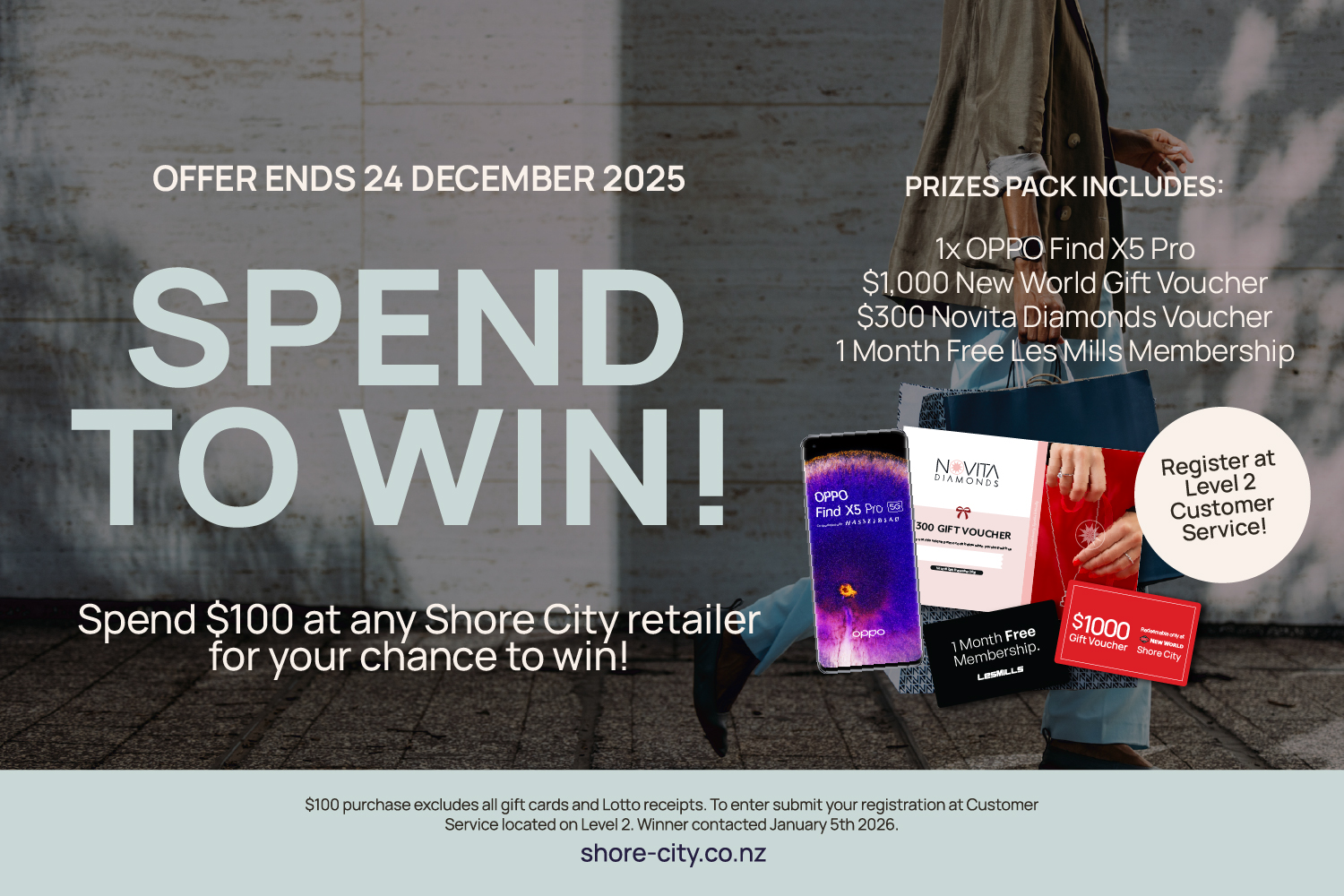Spend $100 or more at any Shore City retailer for your chance to WIN an amazing prize pack.